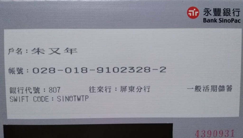 贊助、斗內本站 贊助、斗內、互惠、合作、工商 贊助、斗內本站請轉帳以下CEO本人帳號,互惠、合作、工商等方案,請洽CEO商談。 永豐銀行屏東分行(代碼:807) 戶名:朱又年 帳號:02801891023282 轉帳時請註明贊助(斗內)人名 郵局 (代碼:700) 戶名:朱又年 帳號:00214550053351 轉帳時請註明贊助(斗內)人名 分享此文: Email a link to a friend(在新視窗中開啟) 電子郵件 分享到 Facebook(在新視窗中開啟) Facebook 喜歡 正在載入...